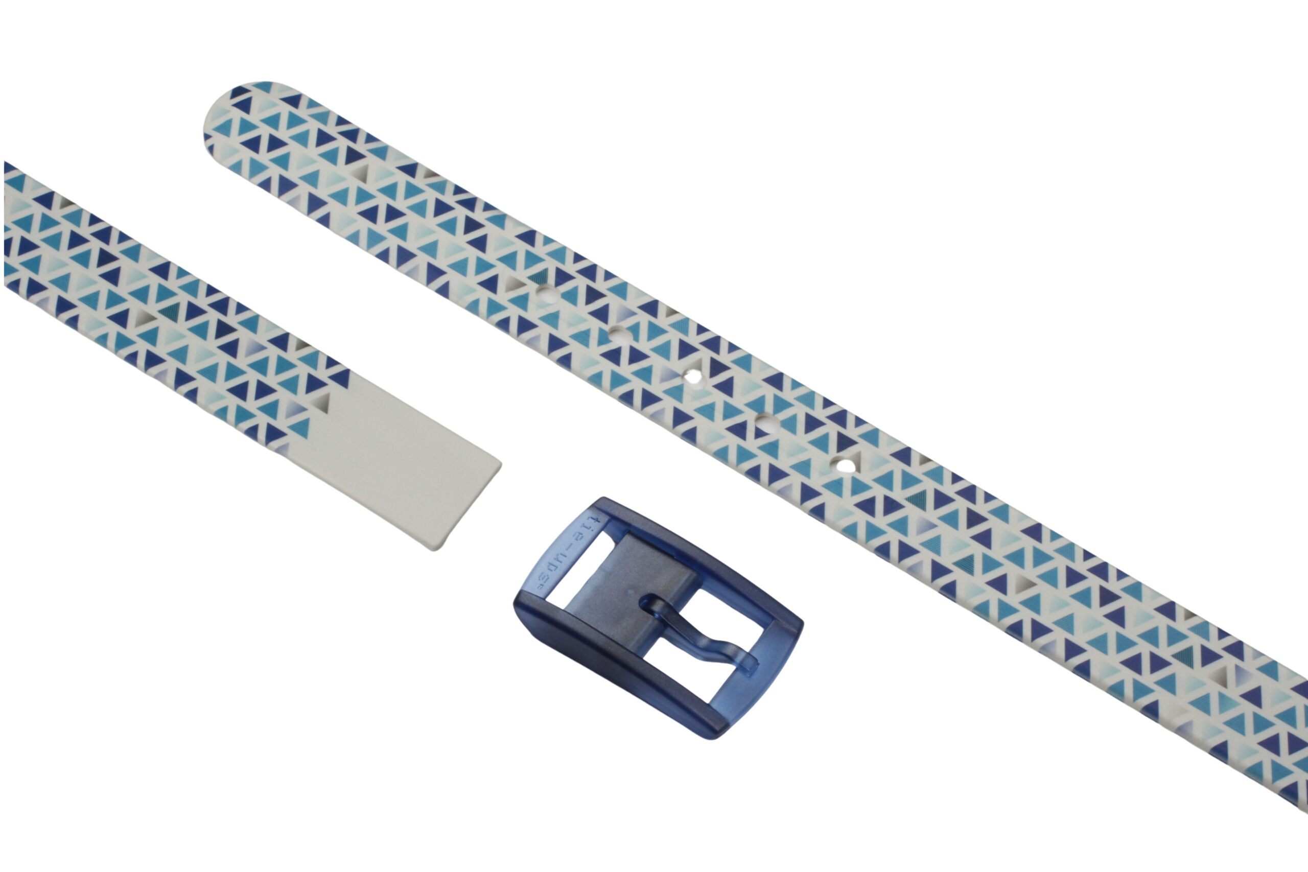 Cintura con grafica geometrica “Angles” dal design moderno e distintivo. Leggera, flessibile e resistente all’acqua, con fibbia in policarbonato senza metallo. Disponibile in quattro varianti colore, perfetta per completare outfit casual con un tocco contemporaneo.
